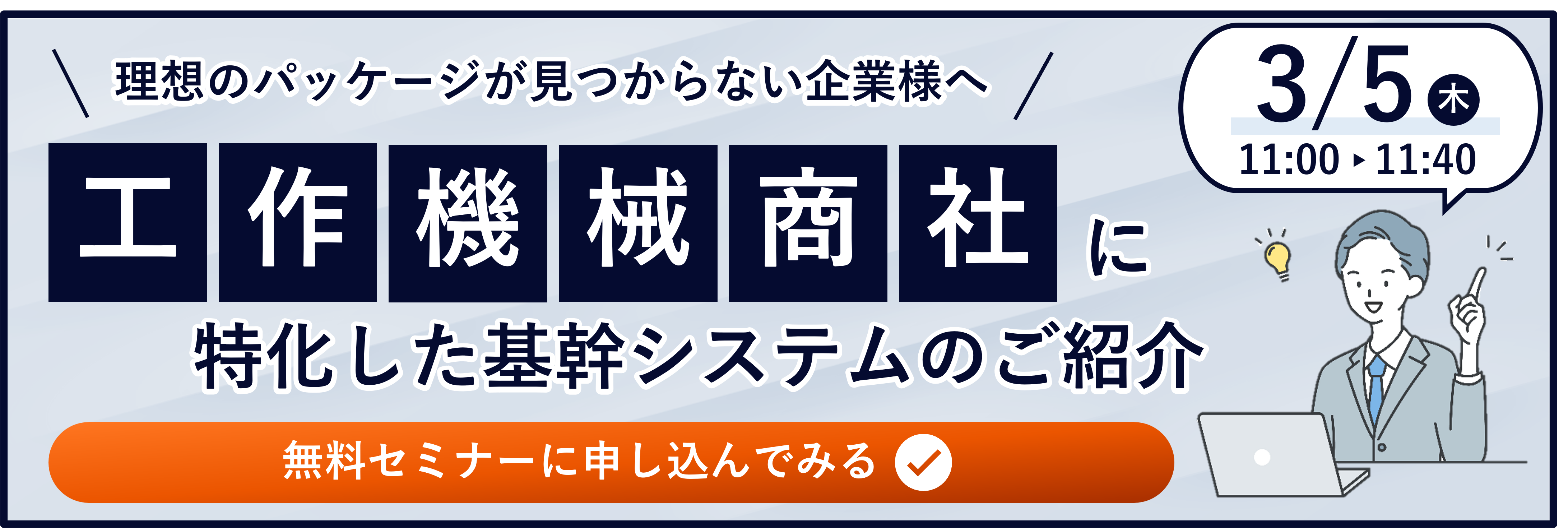 見積から受発注、債権債務に渡り、機械商社・機械卸業特有の業務をワンシステムでカバーします。国内物販はもちろん、輸出入、海外間まで対応しており、お客様の様々な取引を一元管理できます。機器設置・システム設計といった役務にも対応し、物販と合わせた収益管理でお客様に貢献します。